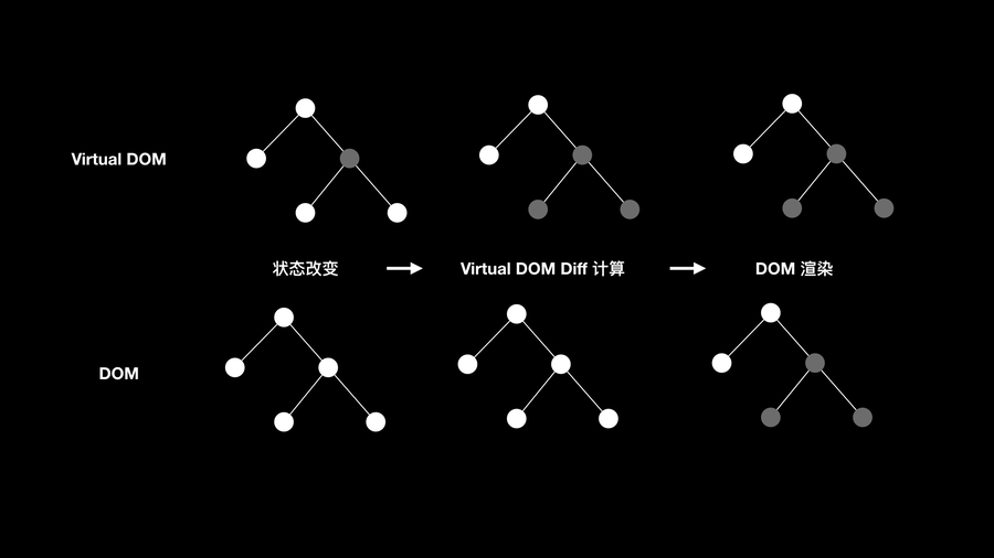 直接在 DOM 上进行操作是非常昂贵的,所以视图组件会和 Virtual DOM 绑定,状态的改变直接更改 Virtual DOM。Virtual DOM 会检查两个状态之间的差异,进行最小的修改,所以 React.js 具有很好的性能。也正是因为性能良好,React.js才能够在前端圈流行起来。
